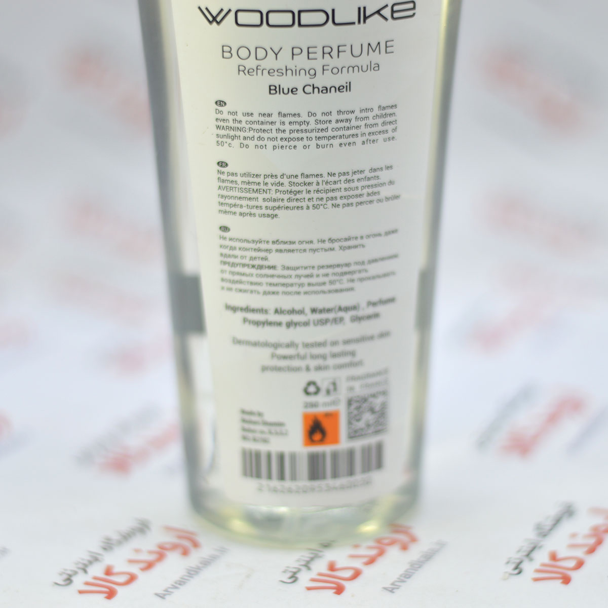 اسپلش بادی وود لایک مدل بلو چنل دارای رایحه ای تلخ و خنک است که برای پوست بدن آقایان طراحی شده است.این محصول بوی بسیار ملایم و سبکی دارد و به همین دلیل اعتماد به نفس را بالا برده و لطافت و جوانی پوست بدن را حفظ میکند.بادی اسپلش وود لایک یک آبرسان عالی برای محافظت از پوست مباشد و به پوست شفافیت میبخشد.