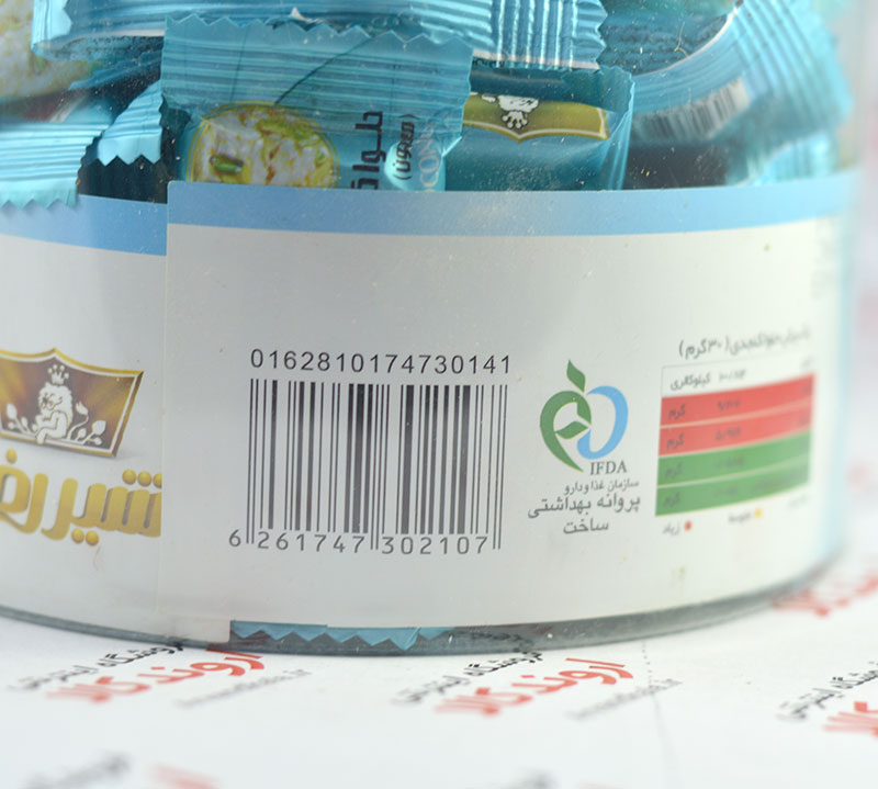 کنجد، شکر، گلوکز، عسل،غلات حجیم شده،پودر نارگیل، پسته ، بادام، اسید سیتریک، آب، هل، کرم کاکائو.