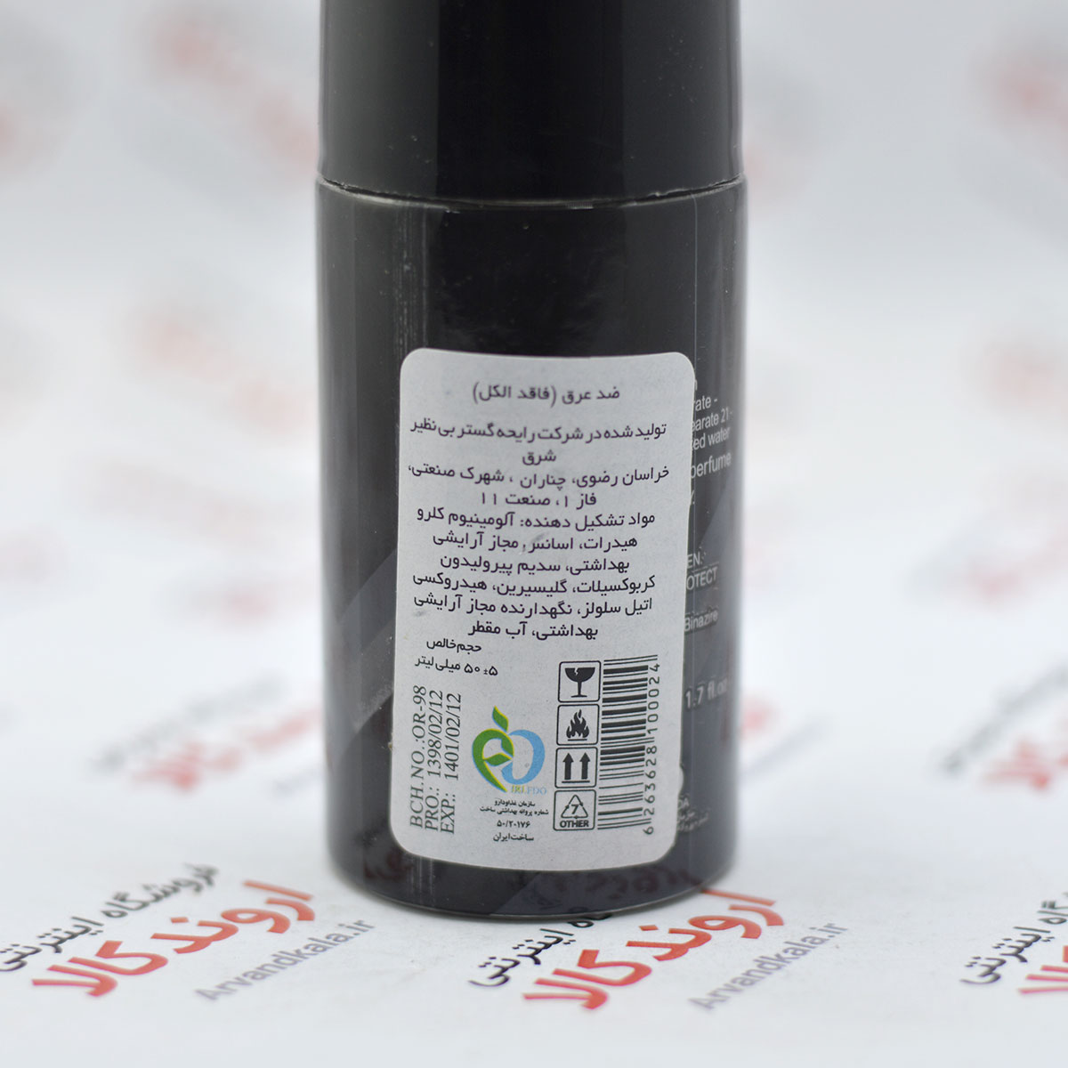 آلومینیوم کلرو هیدرات، اسانس مجاز آرایشی بهداشتی، سدیم پیرولیدون کربوکسیلات، گلیسیرین، هیدروکسی اتیل سلولز، نگهدارنده مجاز آرایشی، آب مقطر.
