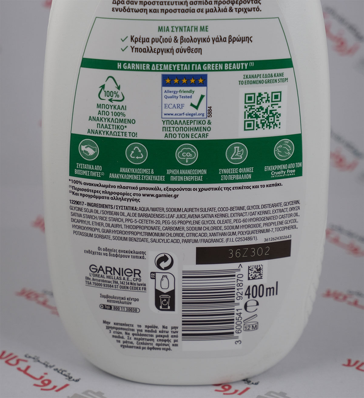 گارنیر Garnier برندی جهانی است که کار خود را از 1904 آغاز کرده است و همواره کوشیده است تا محصولات مراقبتی و زیبایی مو و پوست خود را بر پایه نوآوری، کیفیت و بی ضرر برای انسان و طبیعت تولید کند. شامپو تسکین دهنده گارنیر GARNIER مدل Oat Milk حاوی کرم برنج و عصاره جو دو سر بوده و پوست سر را به خوبی آبرسانی می نماید. این شامپو ضد حساسیت است و مناسب پوست سر حساس و تسکین دهنده خارش سر می باشد.