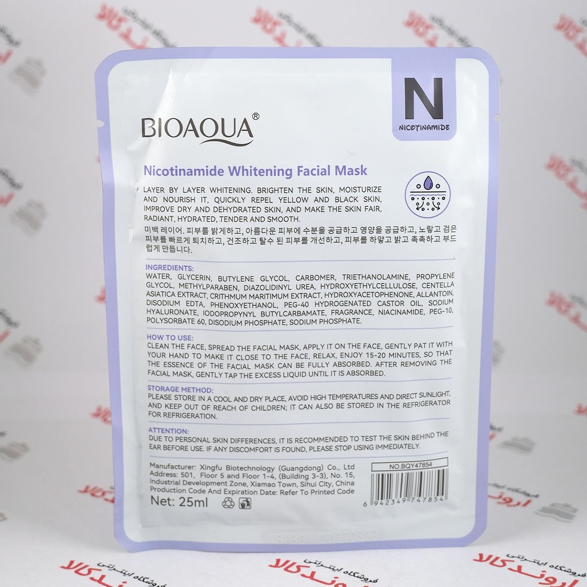 ماسک ورقه ای صورت بیوآکوا BioAqua مدل Nicotinamide Whitening
