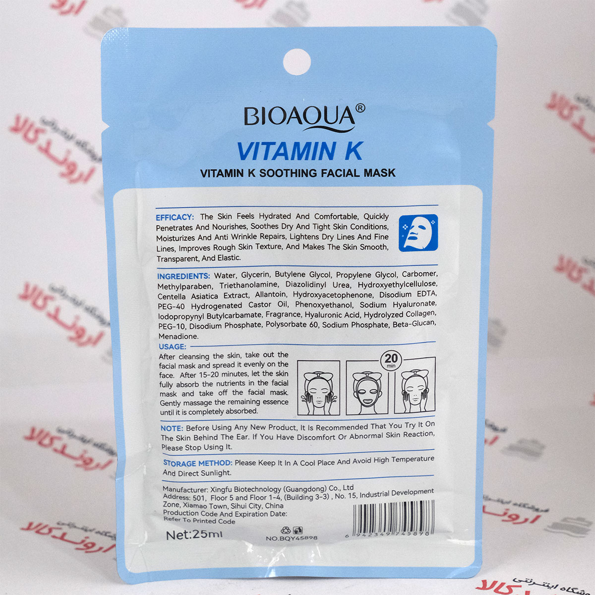 ماسک ورقه ای صورت بیوآکوا BioAqua مدل Vitamin K