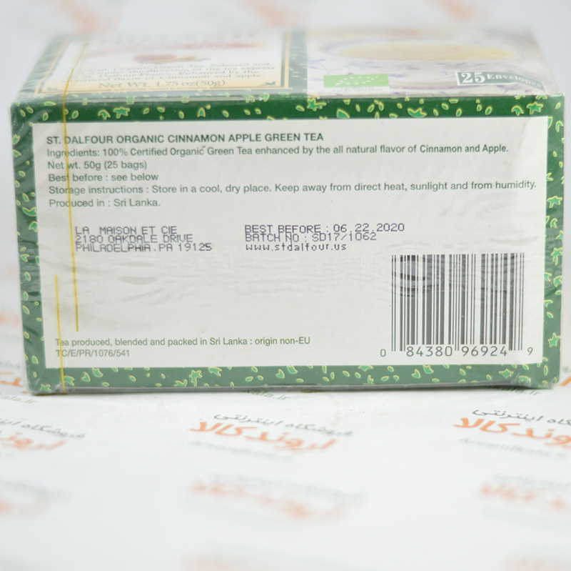 چای سبز ارگانیک St. Dalfour با طعم سیب و دارچین