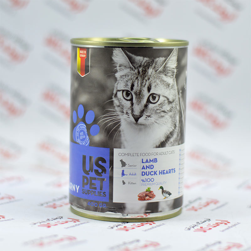 کنسرو غذای گربه یو اس US مدل Lamb & Duck Hearts
