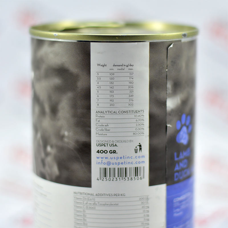 کنسرو غذای گربه یو اس US ، مناسب گربه های بالغ و حاوی گوشت بره و جگر اردک میباشد که در بالاترین سطح کیفیت تولید شده است. این محصول فاقد گلوتن و سویا میباشد و از هیچ رنگ و مواد نگهدارنده ای استفاده نشده است.