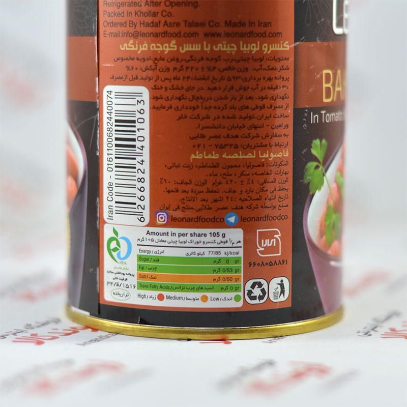 کنسرو لوبیا چینی با سس گوجه فرنگی لئونارد Leonard به آشپزی شما سرعت بخشیده و استفاده از آن در زمان شما صرفه جویی میکند. خواص و فواید لوبیا چیتی بسیار زیاد است و غذایی کامل و مقوی محسوب میشود که بسیار پر طرفدار است.مخصوصا در روزای سرد زمستان که نمیتوان از خواص خوراک لوبیا چیتی به راحتی گذشت. لوبیا چیتی منبع خوبی از فیبر رژیمی هستند و از بسیاری از بیماری ها جلوگیری کرده و به حفظ سلامت سیستم ایمنی کمک می کند.